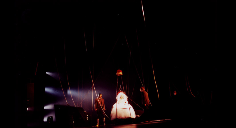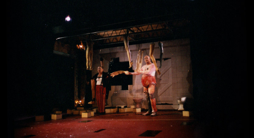 by Alfred Jarry, new version by Tom Wright and Michael Kantor, Directed by Michael Kantor, Set design by Dan Potra, Costume design by Gabriela Tylesova, Sound design by Max Lyandwert, Choreography by Melissa Madden Gray, with Bille Brown, Carole Skinner, Company B Belvoir 2000, Melbourne International Festival 2001.
